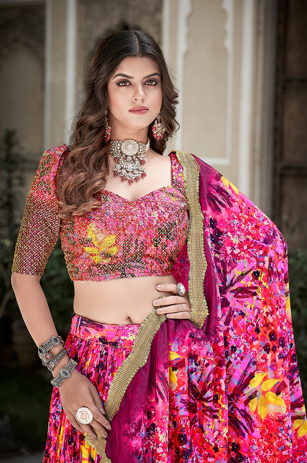 Lehenga Work : Digital Print With Sequins Embroidery work
