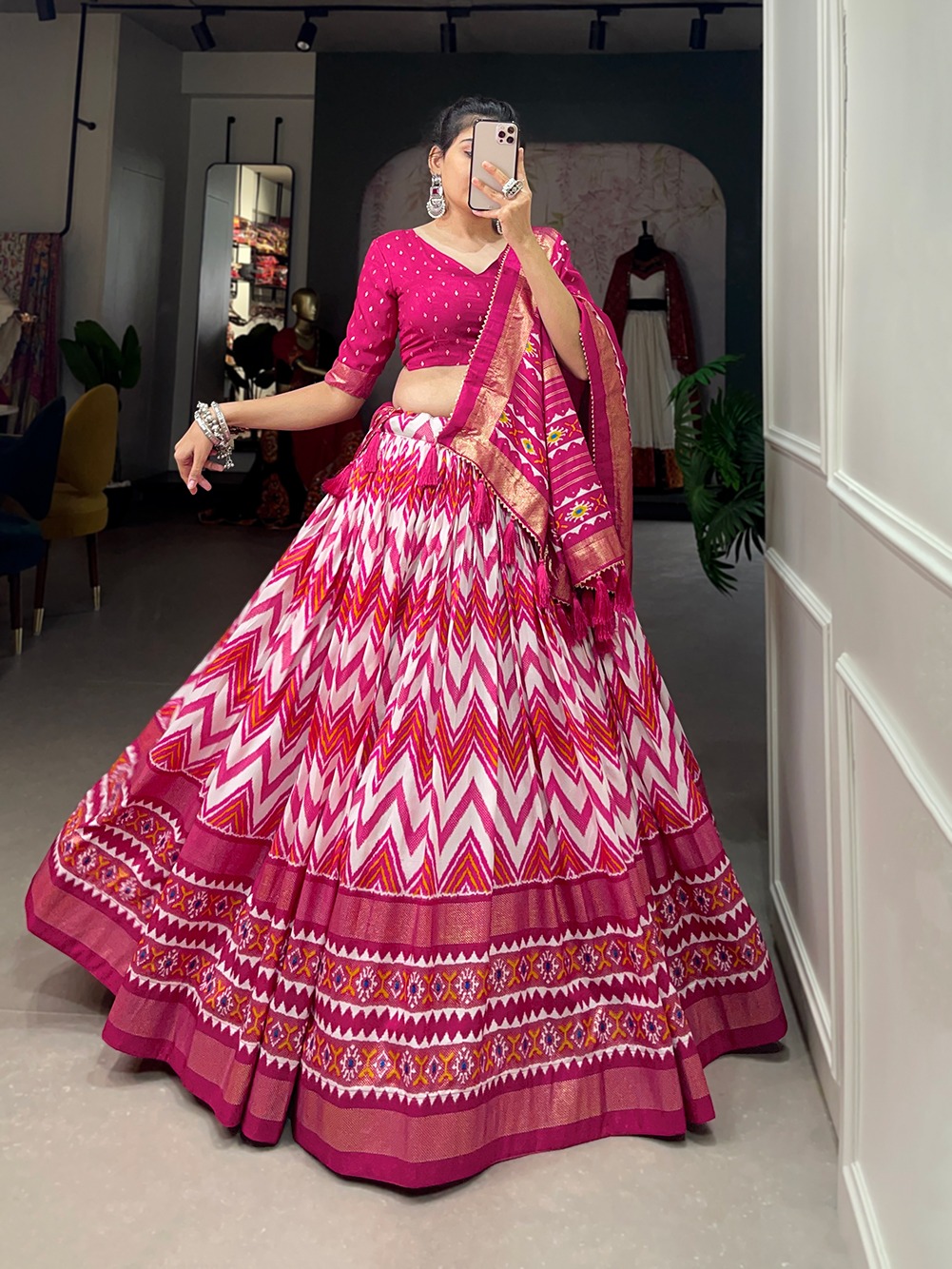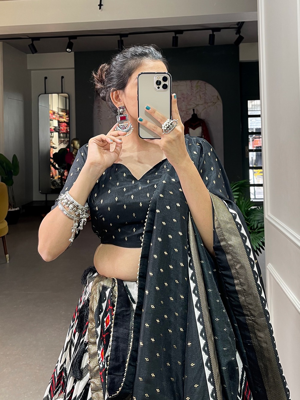 *Package Contain* : Lehenga, Blouse, Dupatta, Drawstring with Zip, Tassels