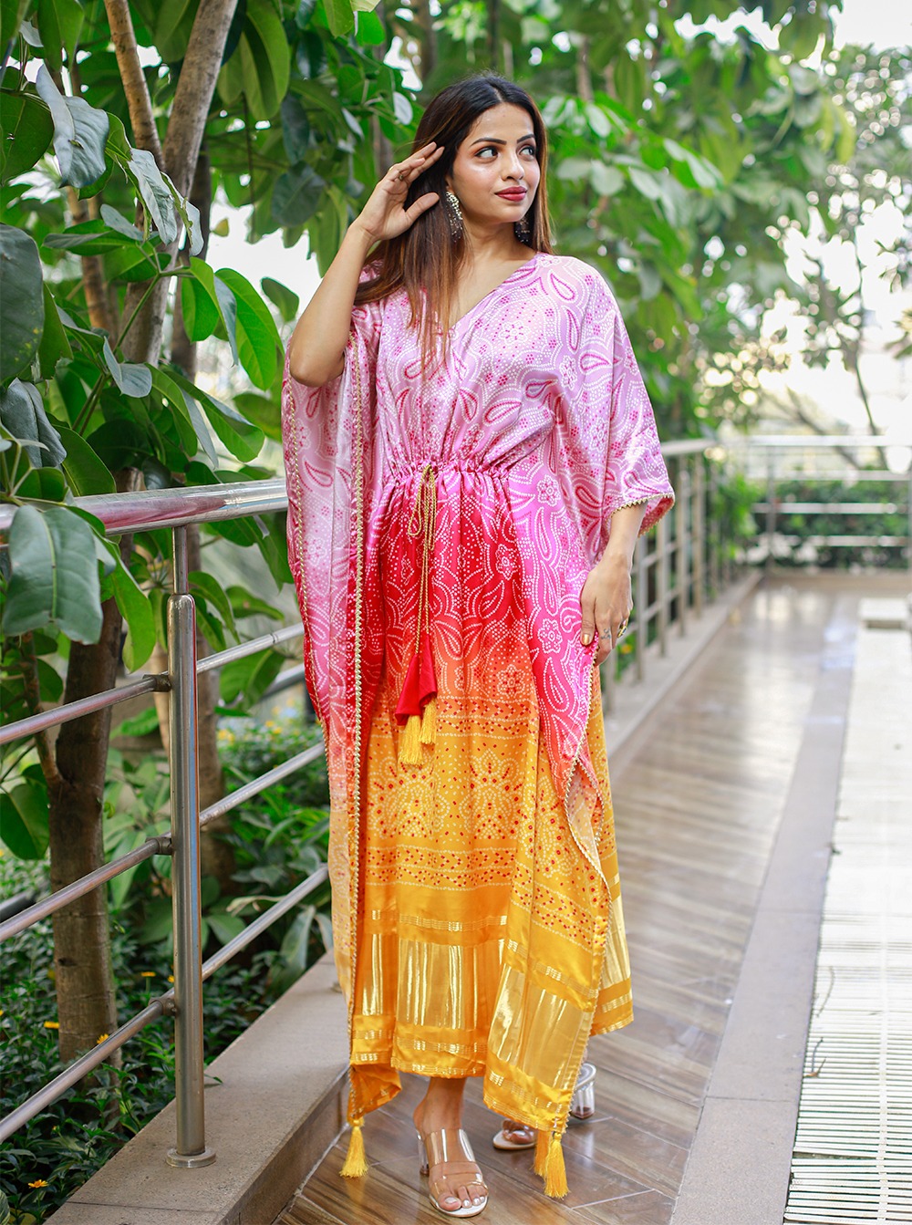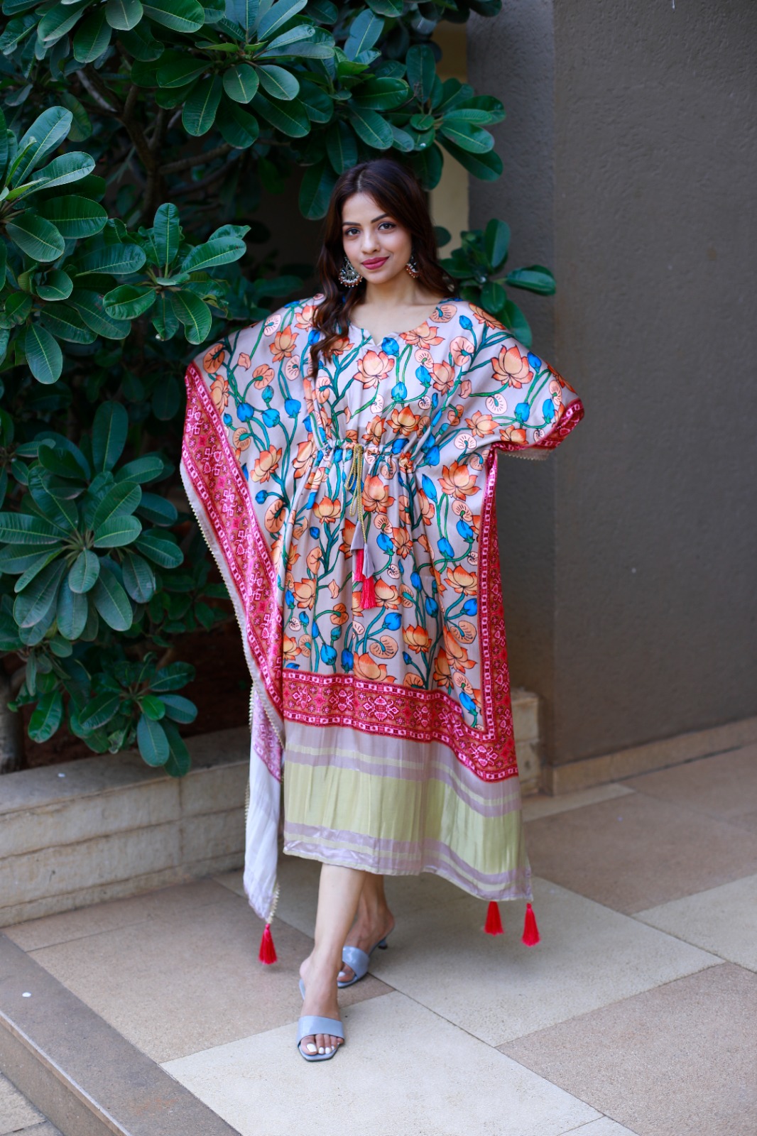 👉🏿Kaftan work : Digital Print with Gotta Patti Lace Border also comes with tassels